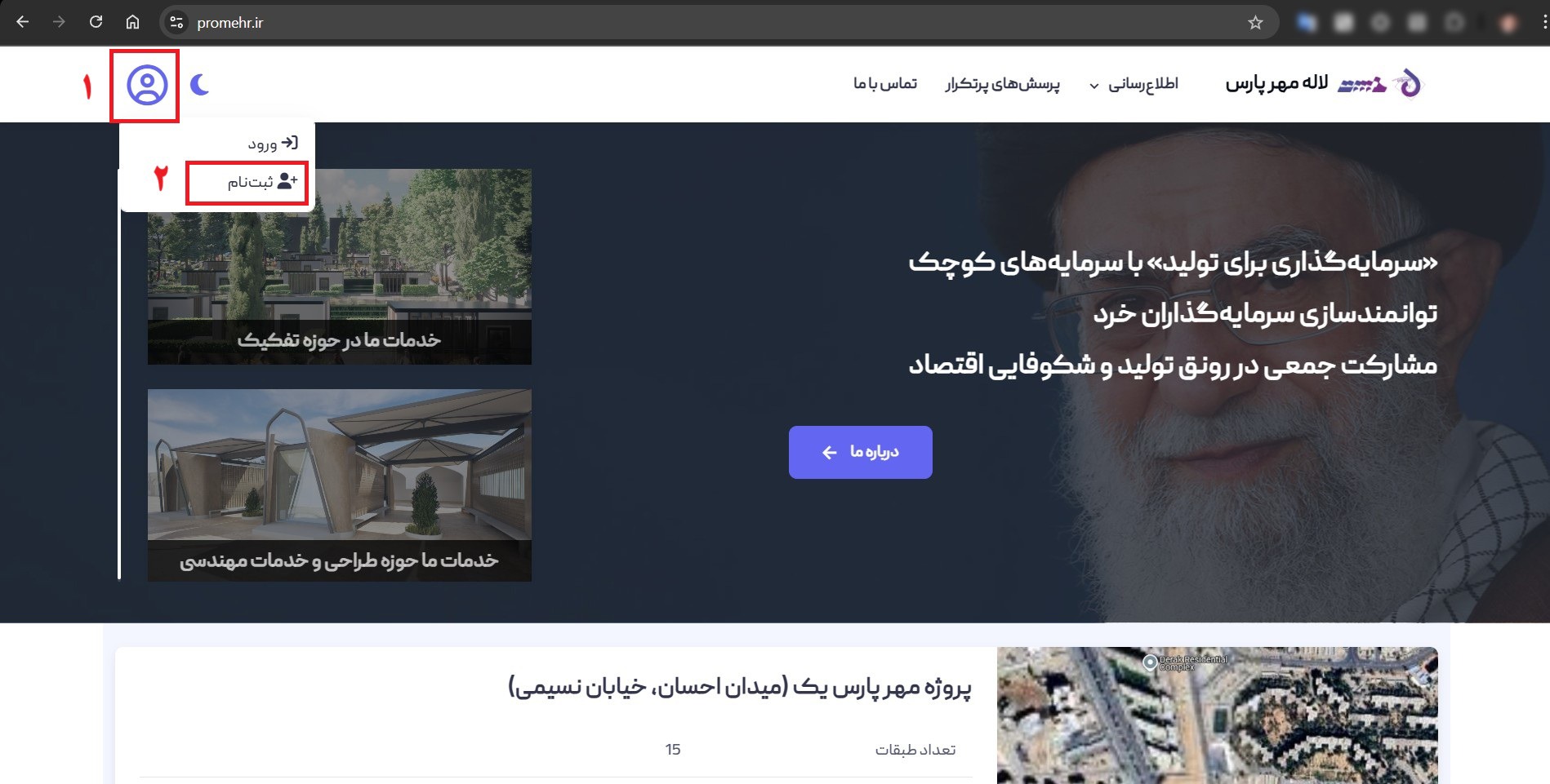 روی آیکون آدمک گوشه بالا چپ، سپس گزینه ثبت‌نام را کلیک کنید